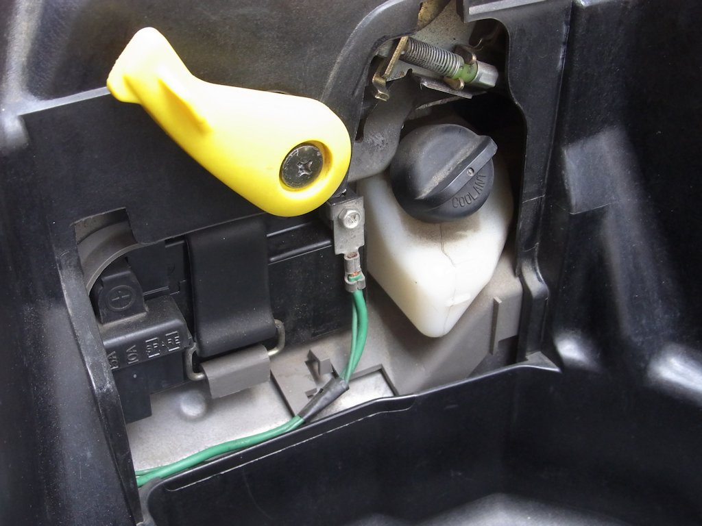 目視確認  リザーバータンクが空っぽ。冷却水(クーラント)不足を確認。