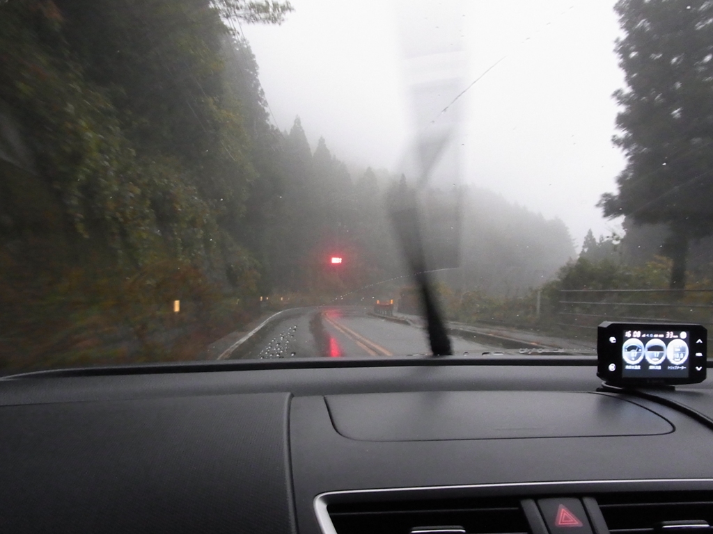 峠の頂上まで登ったものの、雨で葉っぱが散ってしまい、紅葉を楽しむことはできませんでした。