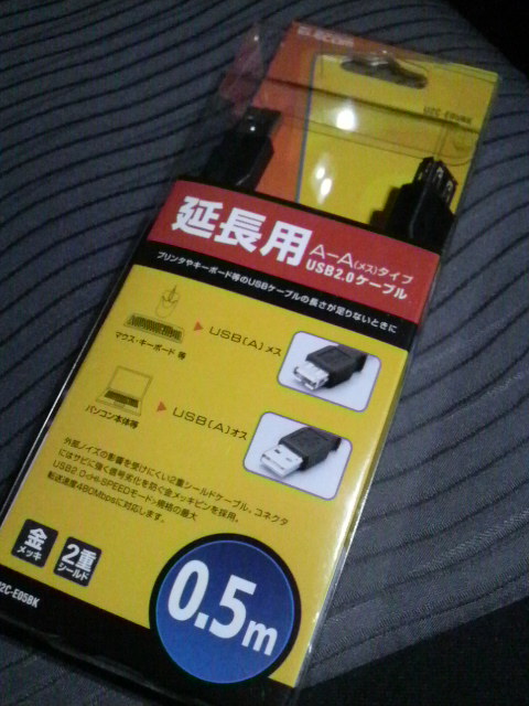 買ったのはエレコムUSB2.0準拠ケーブル(A-A延長タイプ)0.5mです