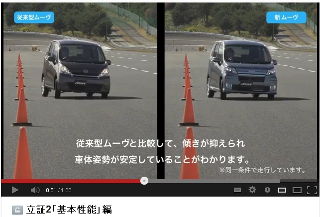 基本性能の進化の動画で従来型との走行比較があったわけですが、従来型ムーブと新型ムーブカスタムを比較して、性能が上がったとはうさんくさいです。