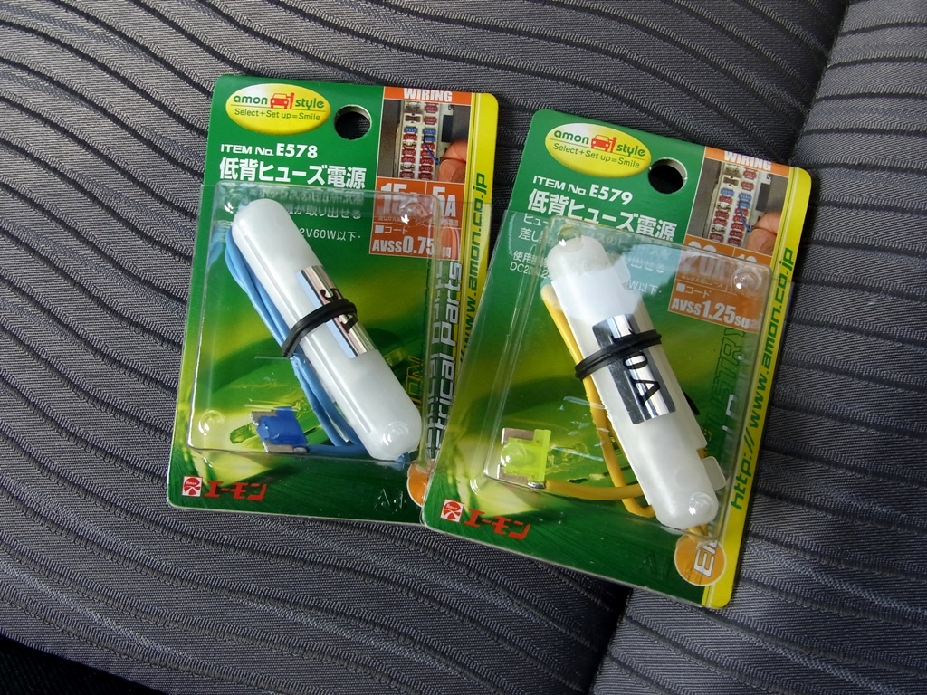 ヒューズから電源を取るためにエーモンの低背ヒューズ電源を使います。