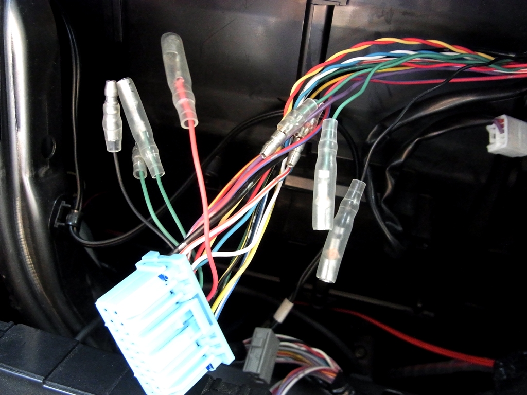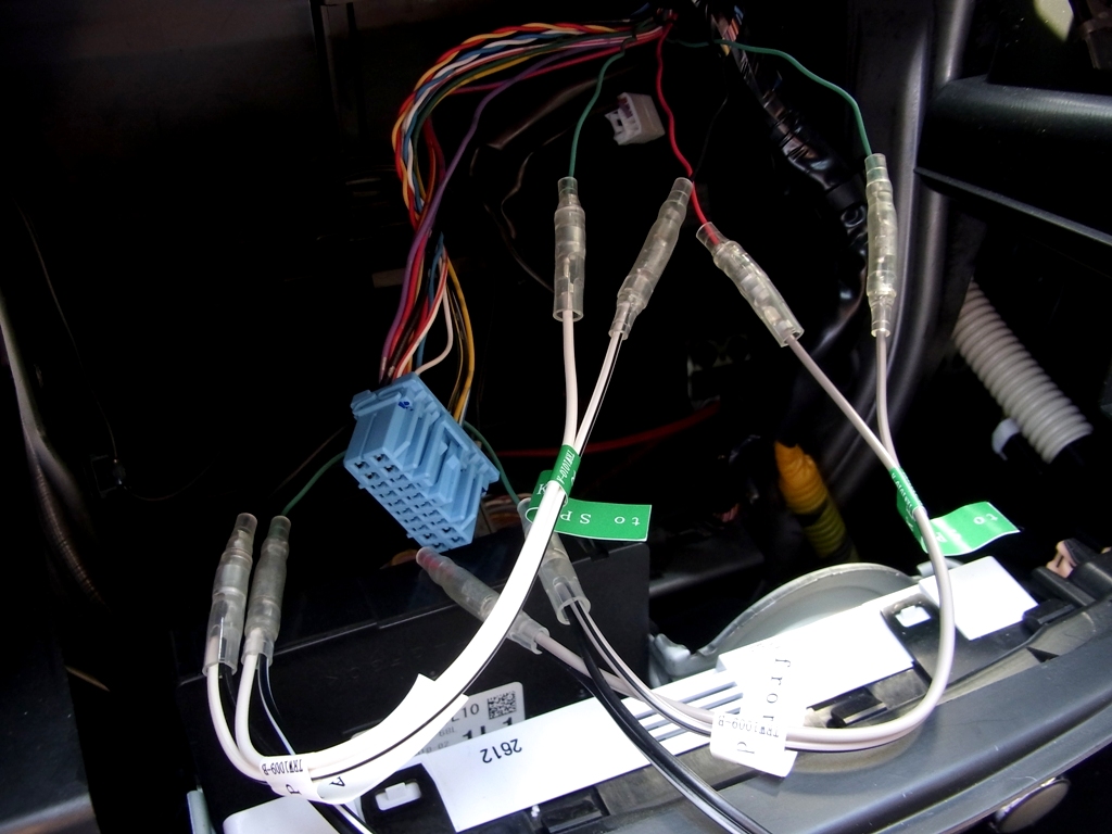 純正リアスピーカーの配線に割り込ませるためにギボシを付けます。