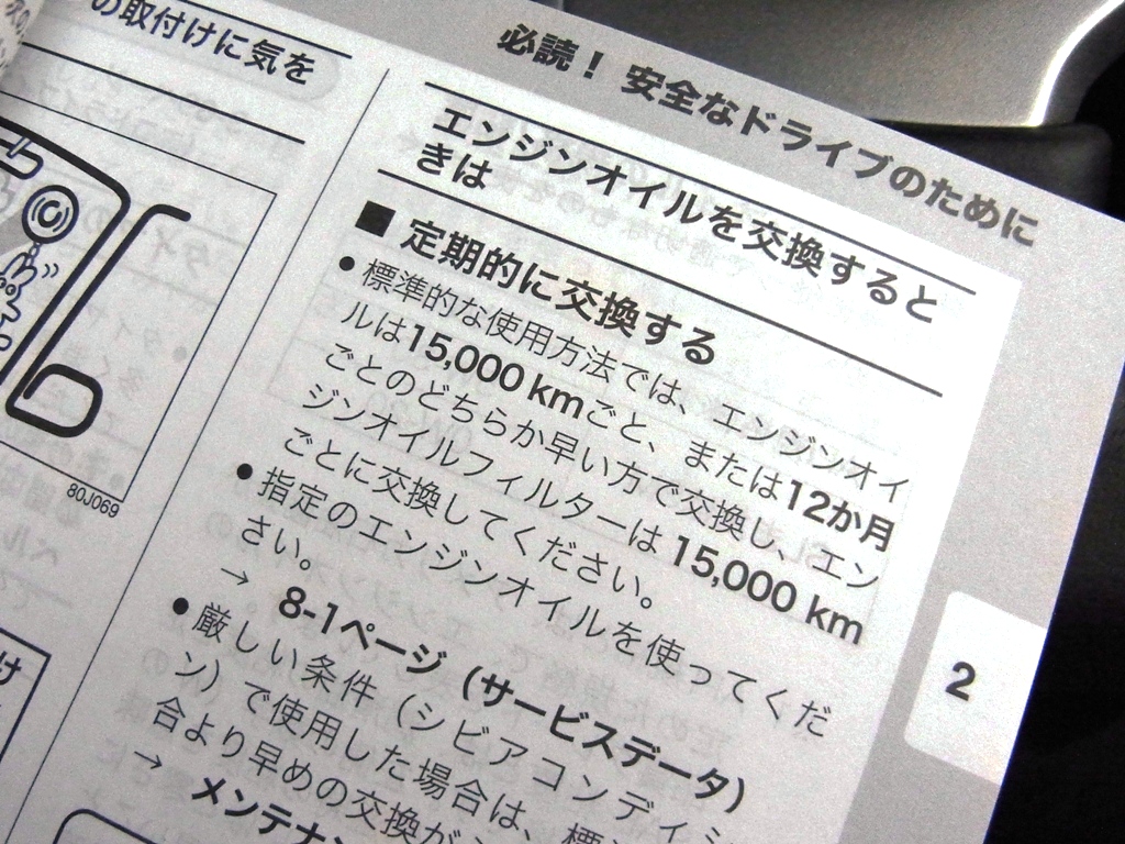 最低でも10000キロ走ればオイル交換しないとエンジンに悪いと思っていたら15000キロで大丈夫なんだって。