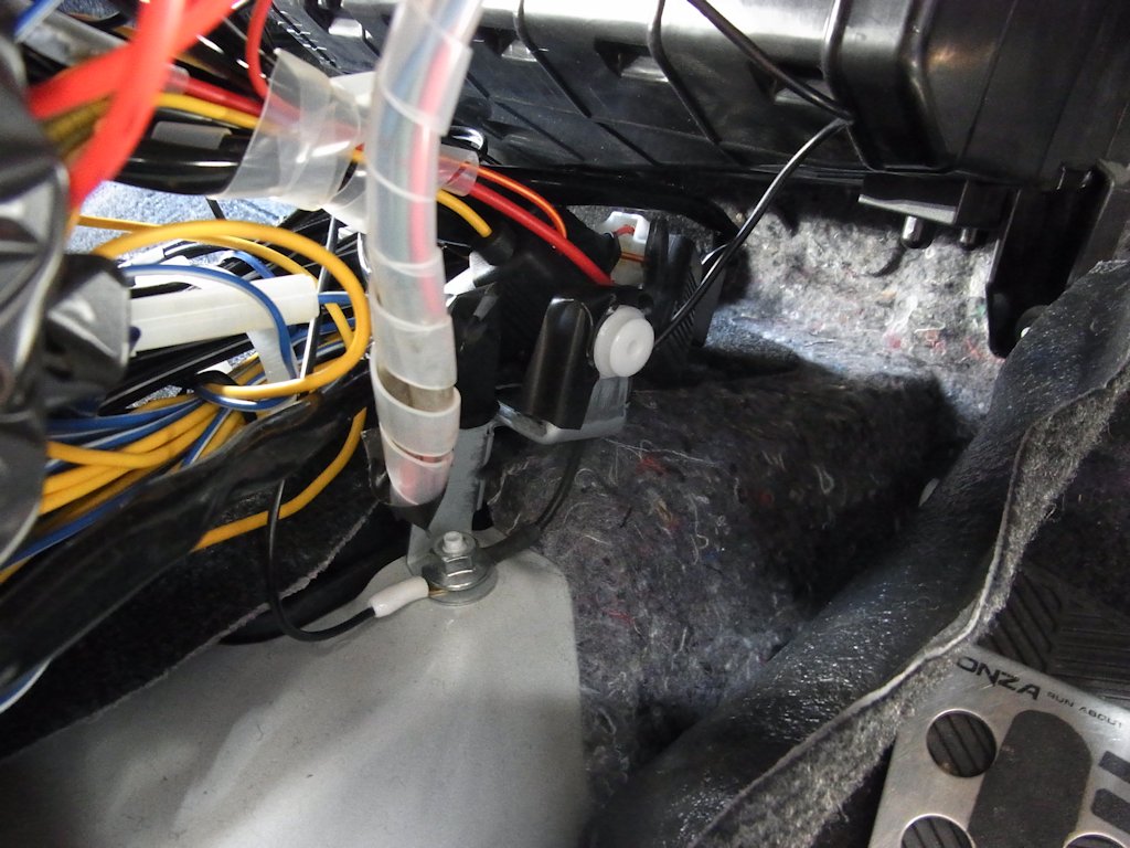 ヒューズボックスの右から電気が流れて、分岐させるようにつなげます。