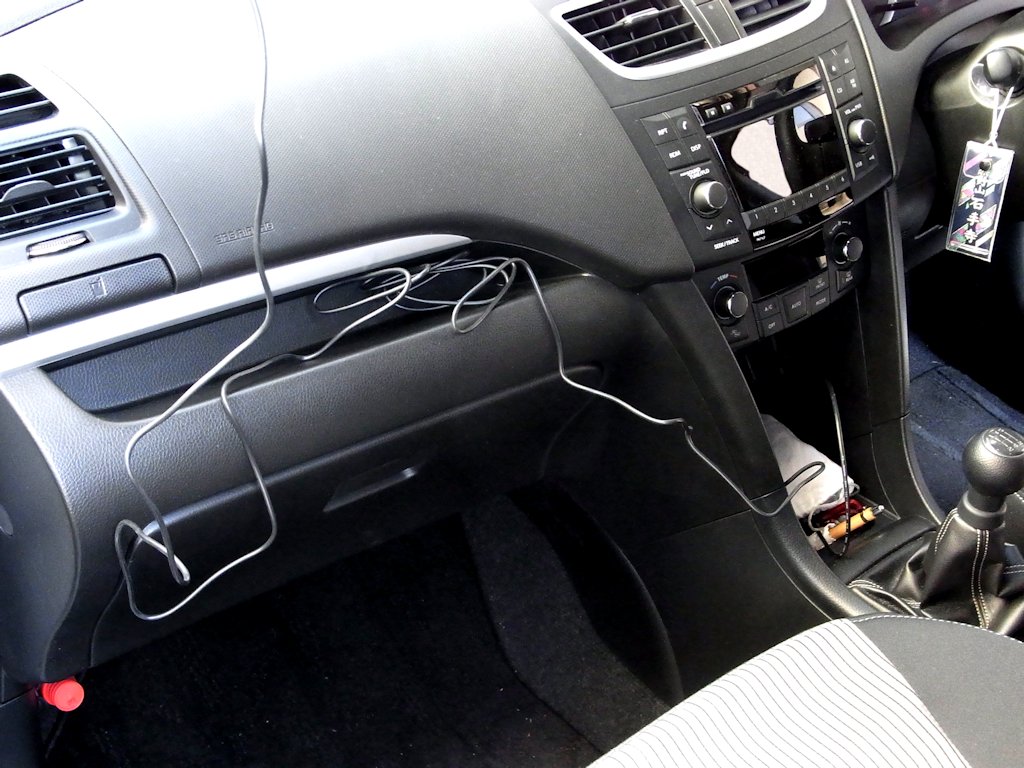 純正のシガーソケットを使うと配線が見えてしまうので見えない位置に増設を行います。