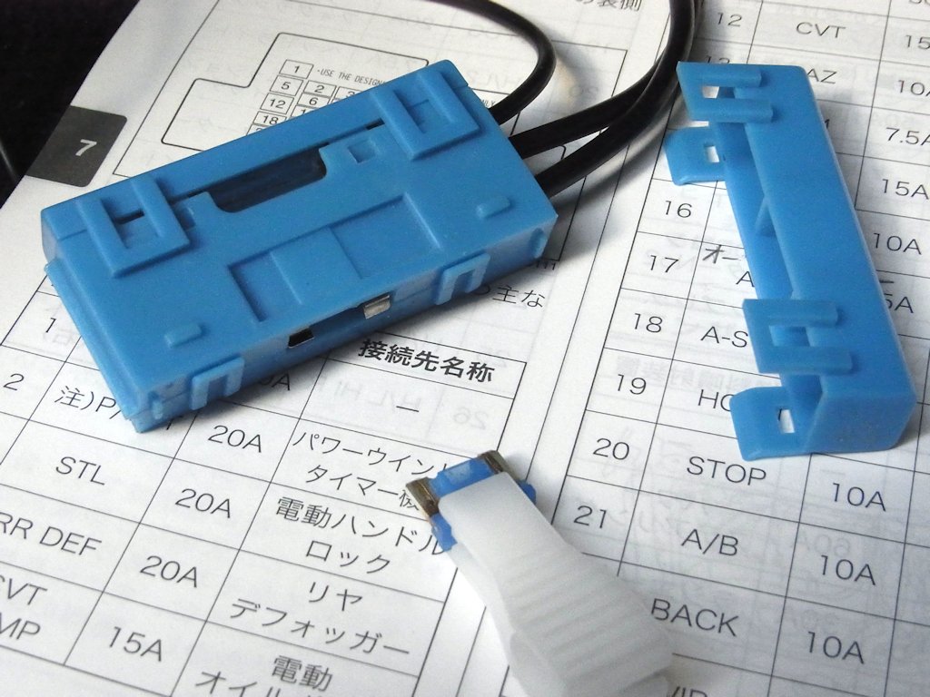 純正のヒューズを抜いて、ワイヤリングソケットに差し込みます。