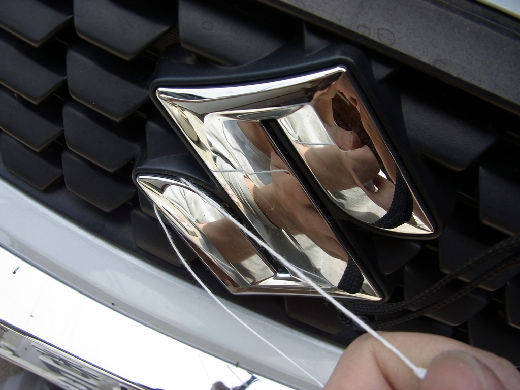 タコ糸で、エンブレムを剥がします。