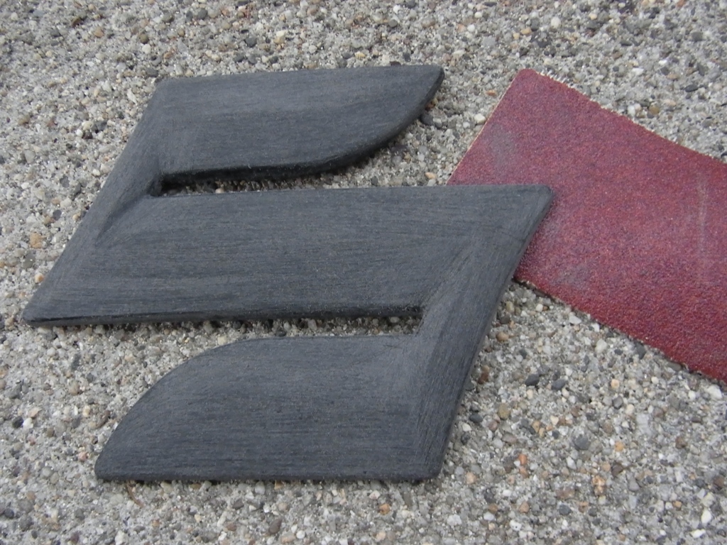 本来ならば、サフ→ブラック→クリアという流れでピカピカのつるつるにすれば深みなあるブラックエンブレムができるんでしょうね。