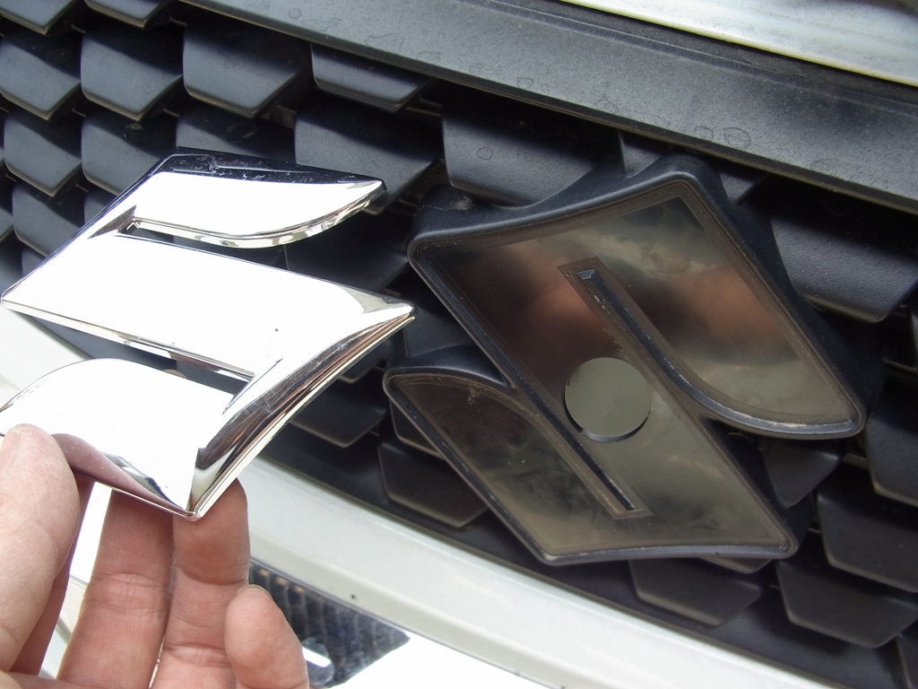 フロントの場合は剥がすと、グリル部分にマークのある位置が残って変な形状に見えちゃう。