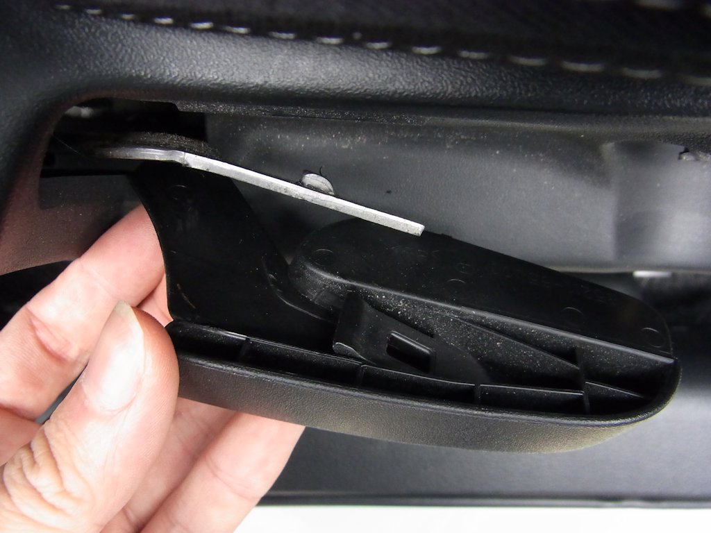 反対側のシートベルトバックル側はネジで止まっているだけなので簡単に外せます。
