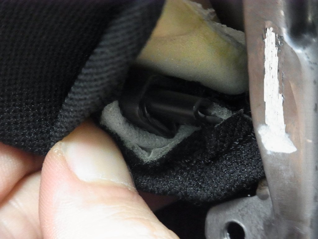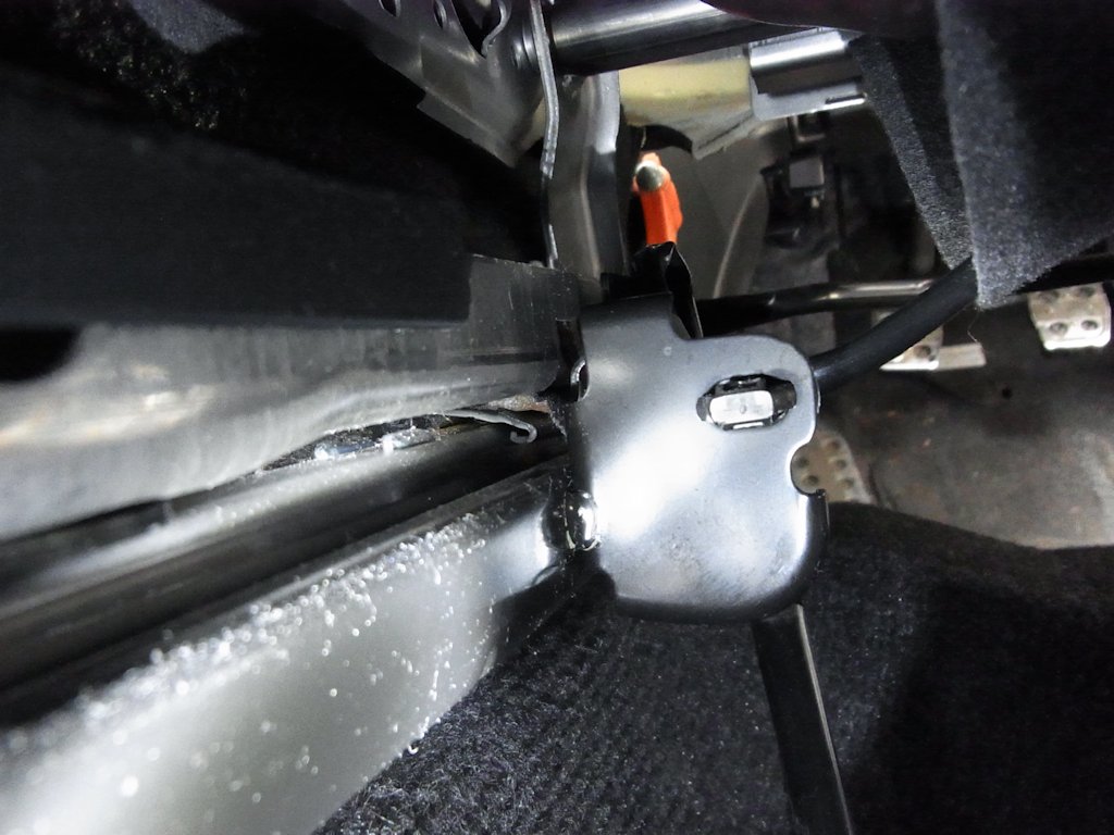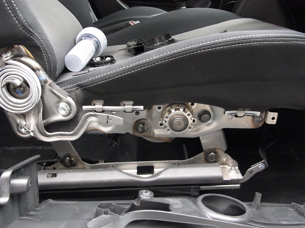 シートレールごと外して車外で作業できれば作業性がよいのでしょうが、手持ちの工具では外せなかったので諦めます。