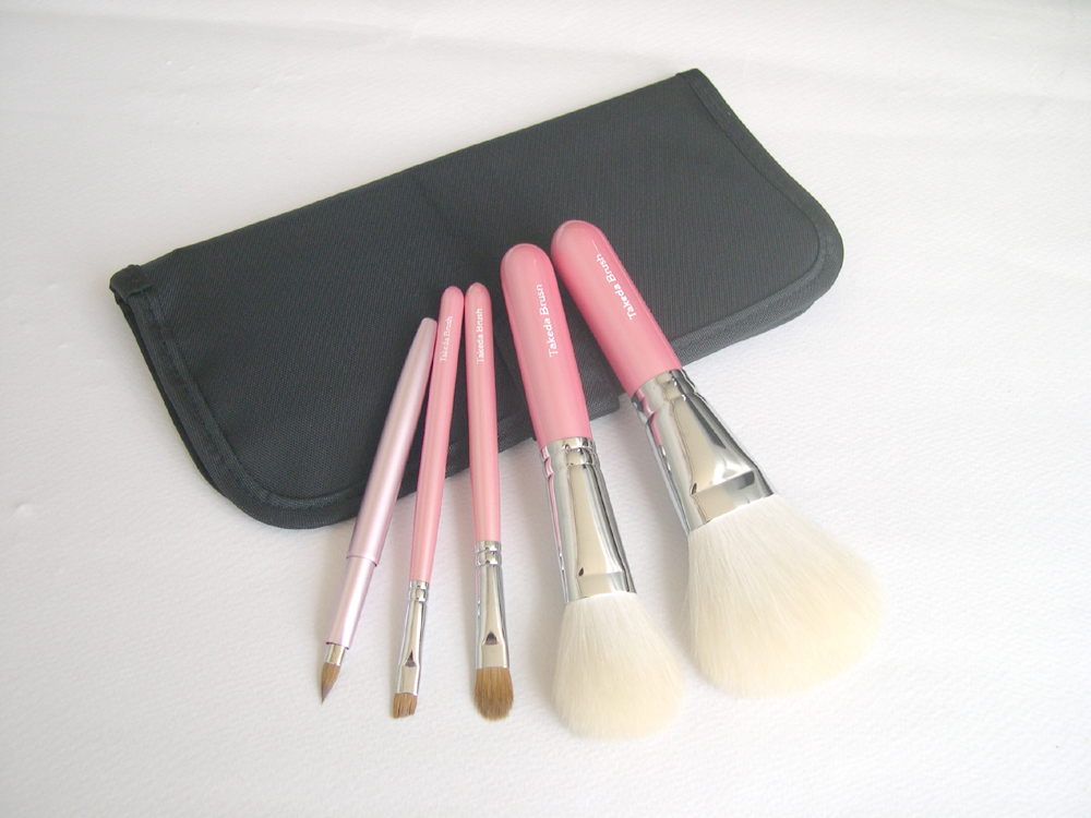 今年用意したのはなでしこジャパンでおなじみの、竹田ブラシの筆。クリスマス限定「ベーシック 化粧ブラシ5本セット ピンク軸 ポーチ付 EXTRA」というやつにしてみた。