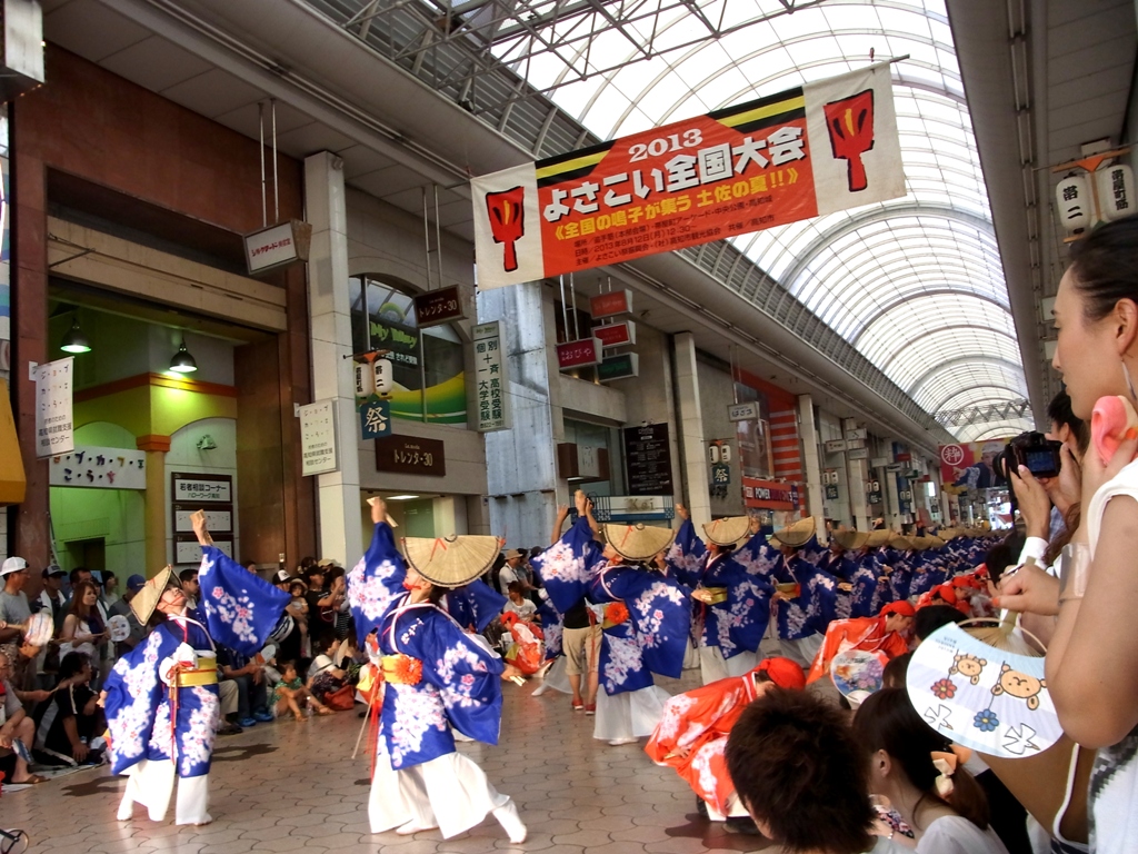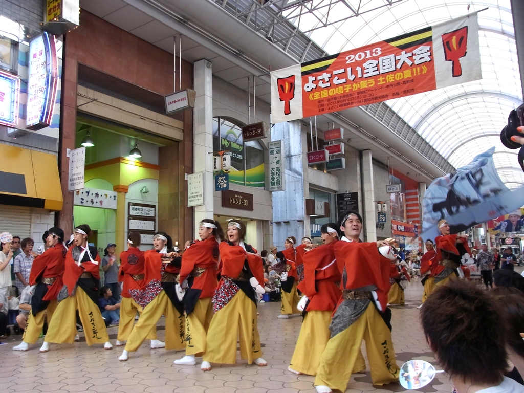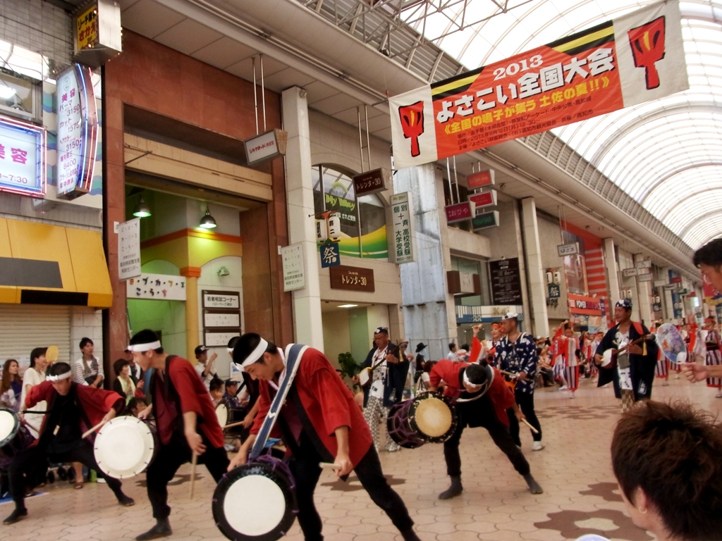 腹ごしらえが済んだら、メインであるよさこいを見に市内まで。
