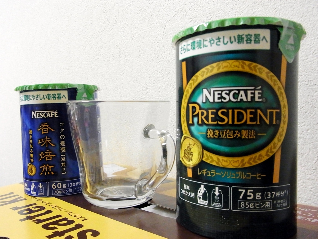コーヒーはネスカフェ香味焙煎とネスカフェプレジデントの2つ