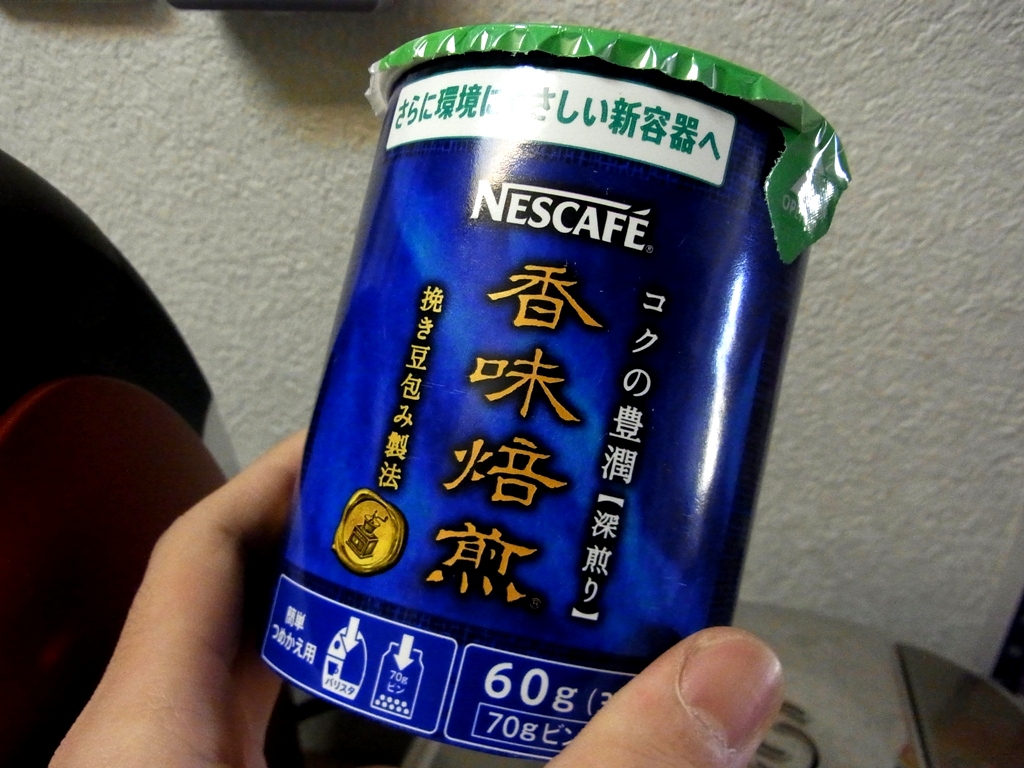 スターターキットに付属していた「ネスカフェ 香味焙煎 エコ&システムパック コクの豊潤 深煎り 60g」を使います