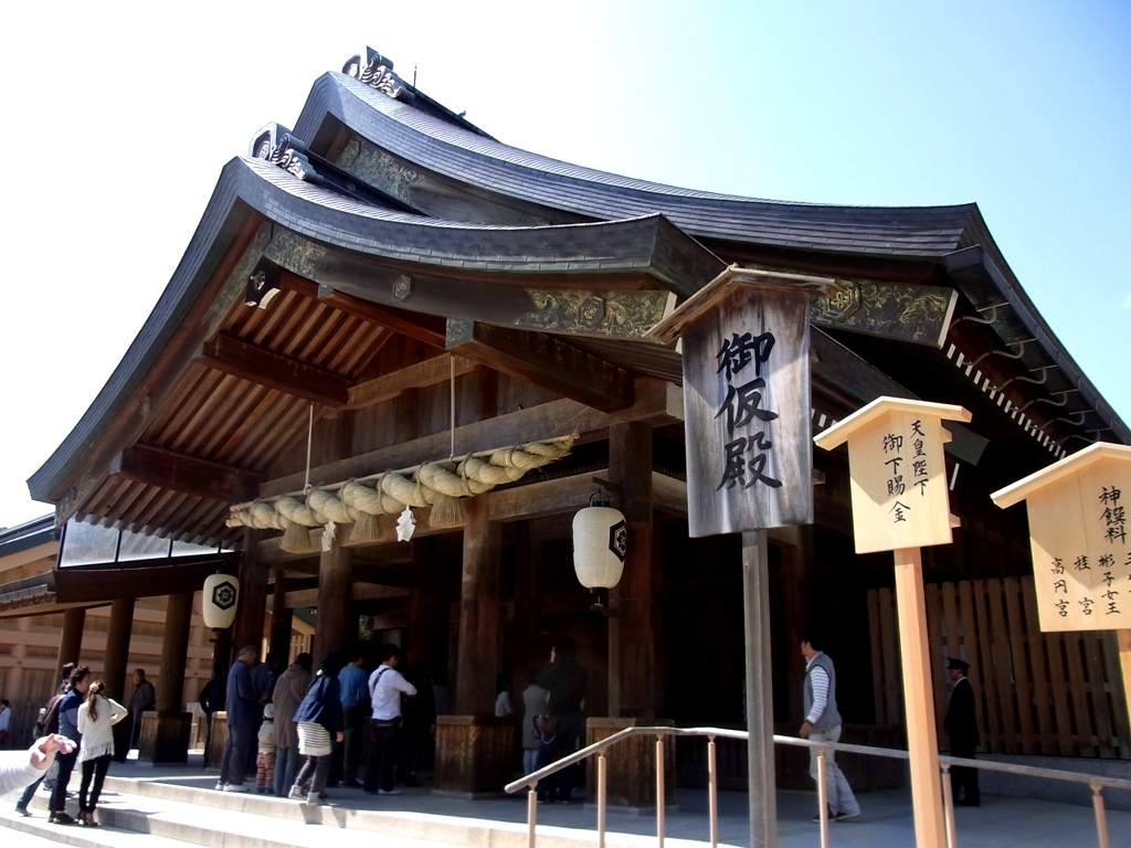 御仮殿。平成の大遷宮のため、御祭神の大国主命はここにいる。