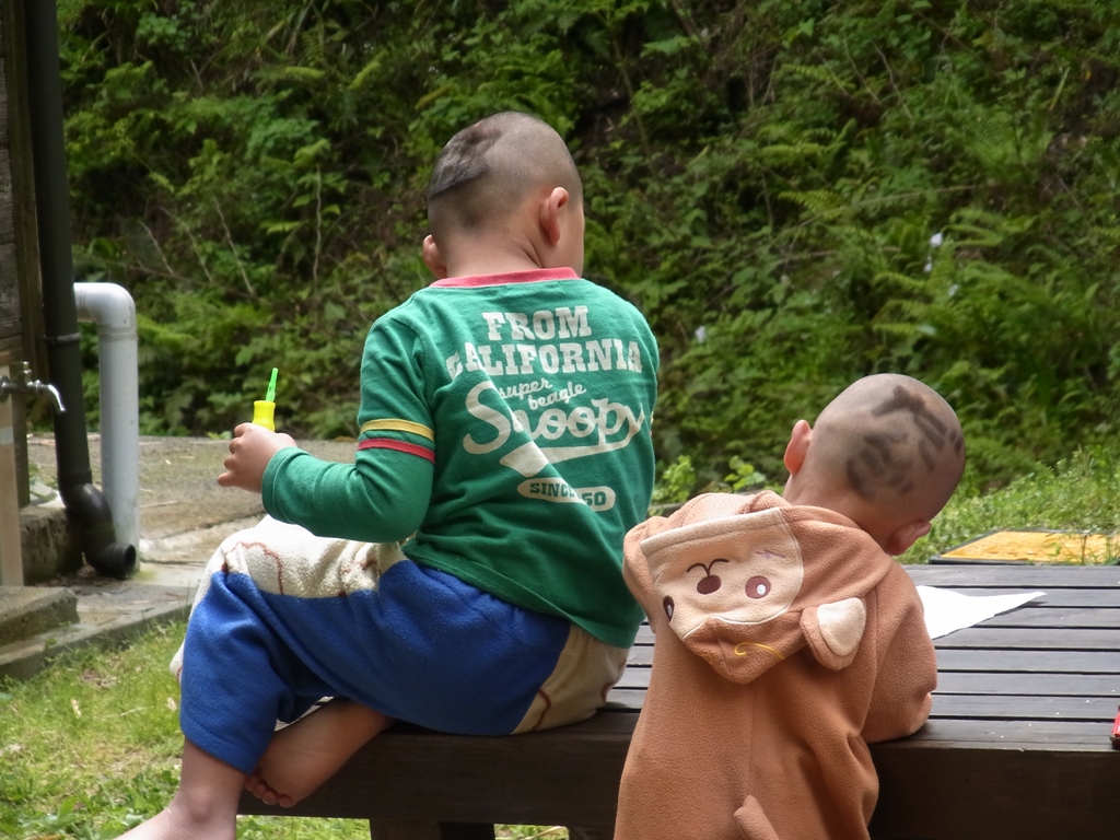 売り子の女の子可愛いです。が、弟と妹らしい子たちの頭はアート状態。