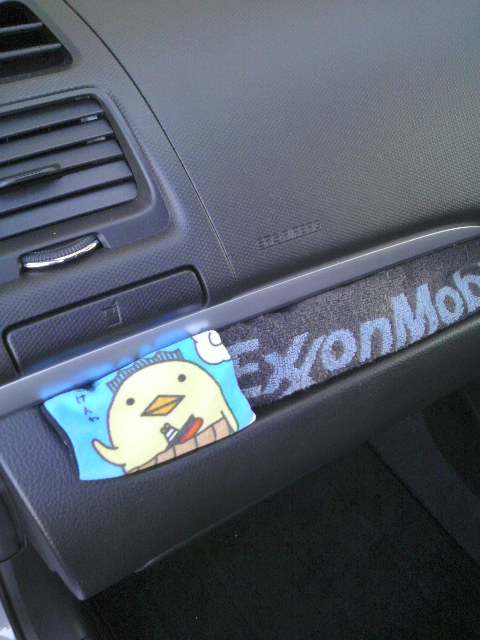 タオルは助手席のドリンクホルダーの下で水滴が垂れるのを防ぎます