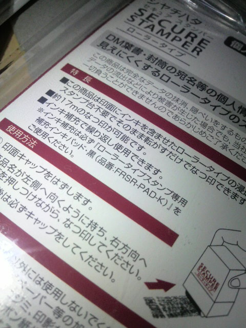 シャチハタのセキュアスタンパーローラータイプを貰いました