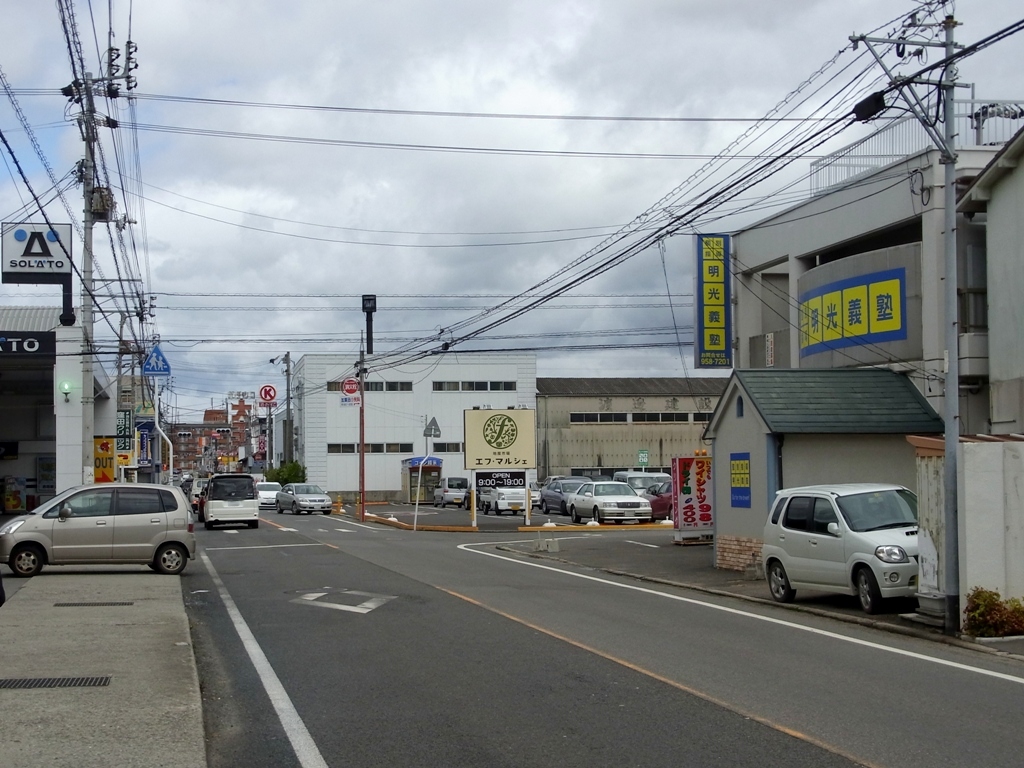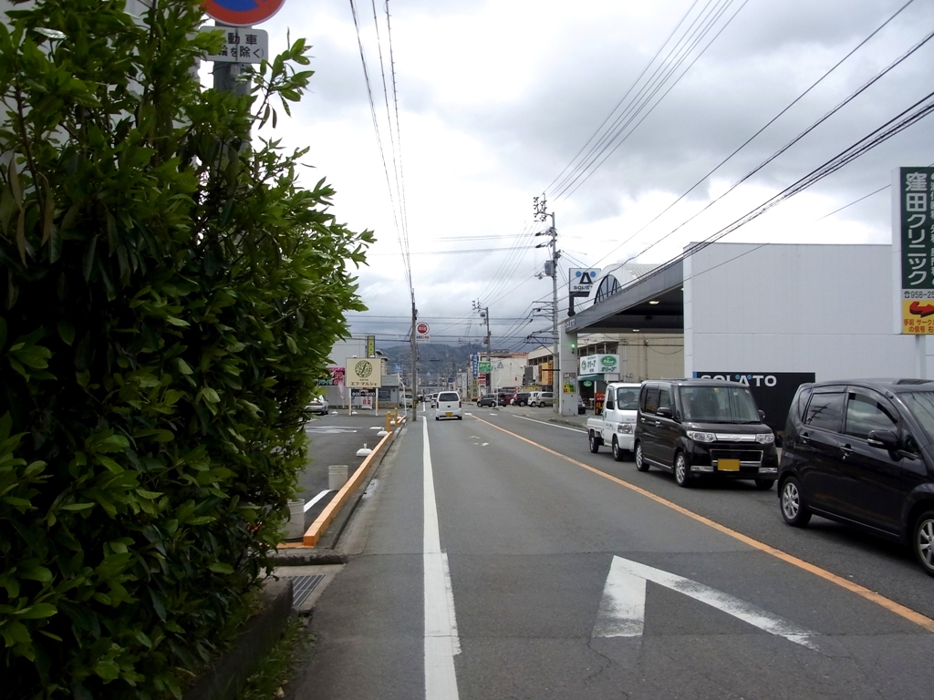 松山方面へ向う側からだと、右手に看板と建物が見えてきます。