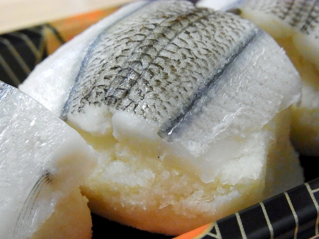 サバ寿司のような味だけど、触感がふわふわしていて、面白い食べ物ですね。これ。